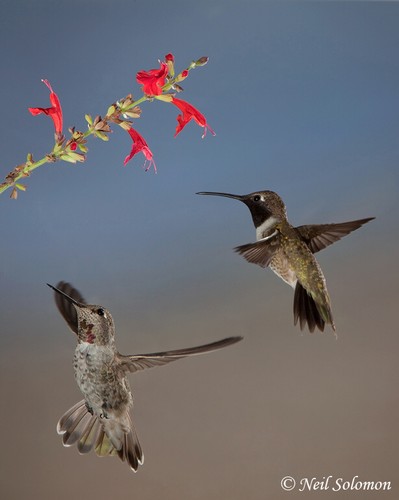 Immature Male Anna's and Male Black-chinned Hummingbirds