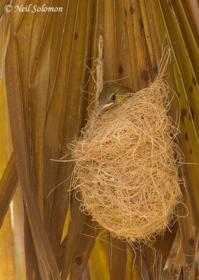 from the palm leaf fibers. The nest will usually be about 4 inches long