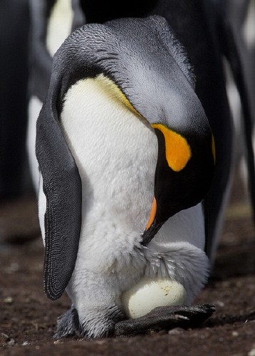 King Penguins do not build nests. Instead the single egg is incubated