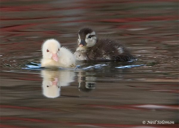 Albino Wood Duck Duckling and Sibling